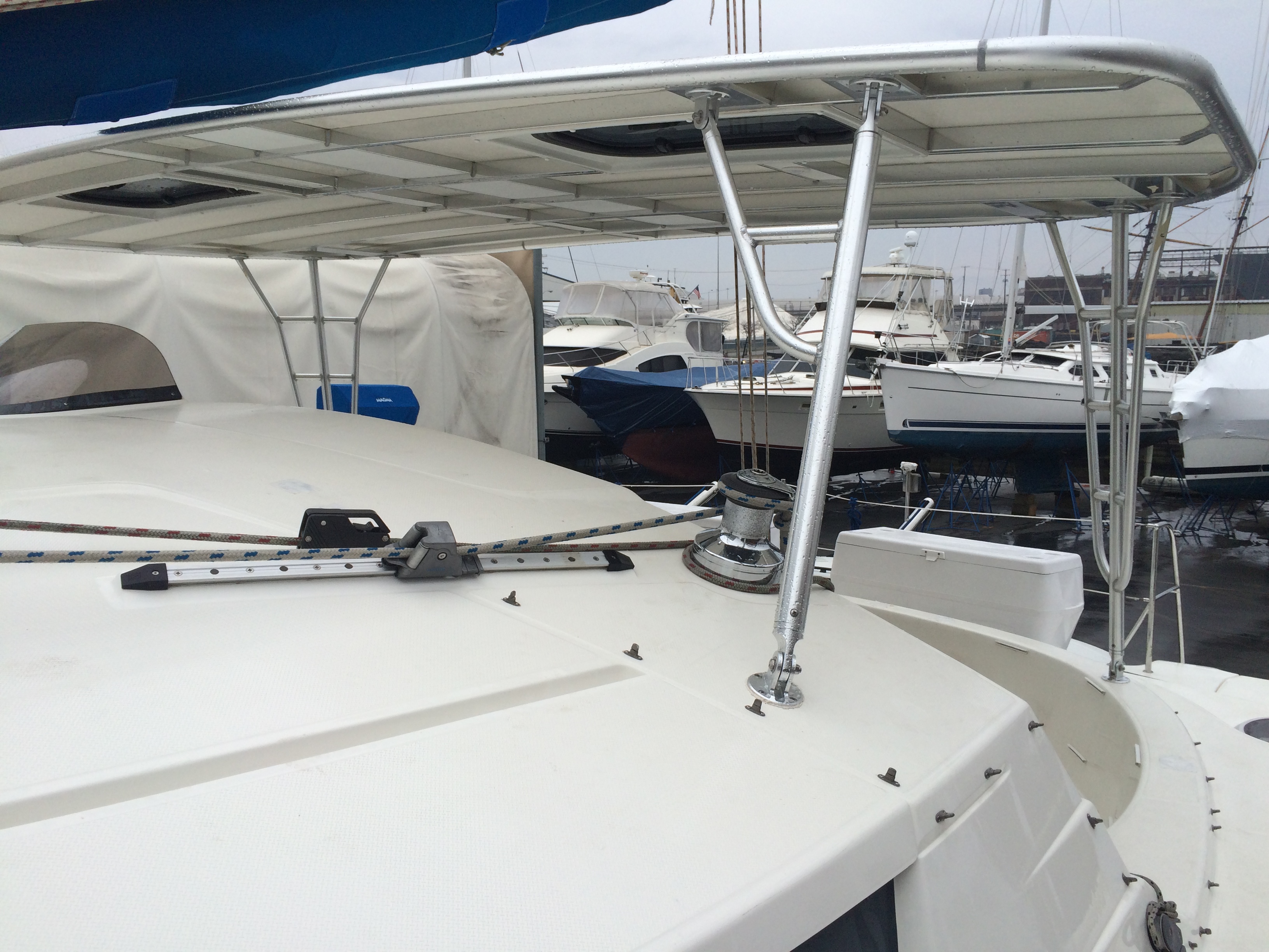 • REINFORCED to accept mounting of solar panels, access to the the rig, available non-skid walk areas for installing sail covers, etc.